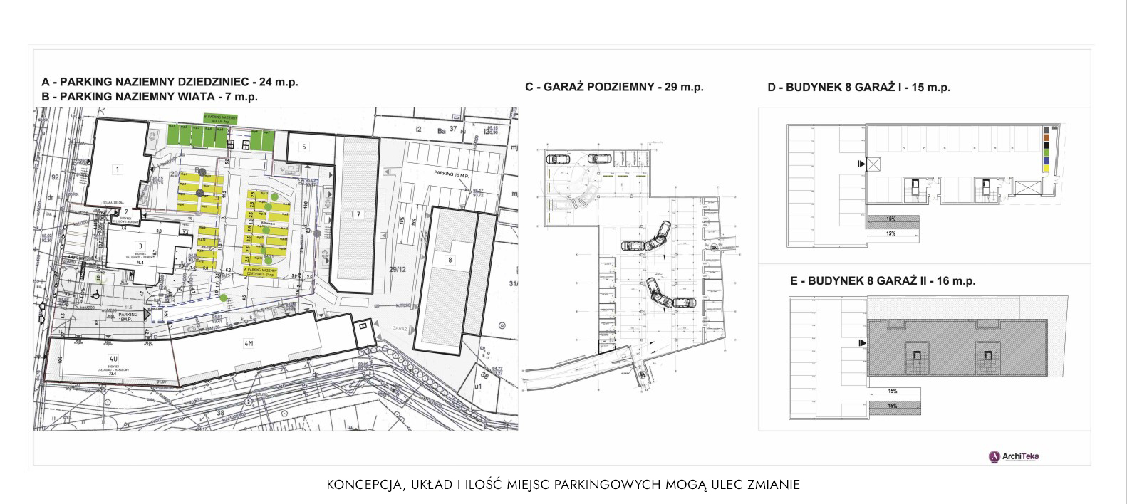 Wszystkie miejsca parkingowe w garażu podziemnym, wiatach oraz na parkingu bedą przeznaczone na wynajem długoterminowy.